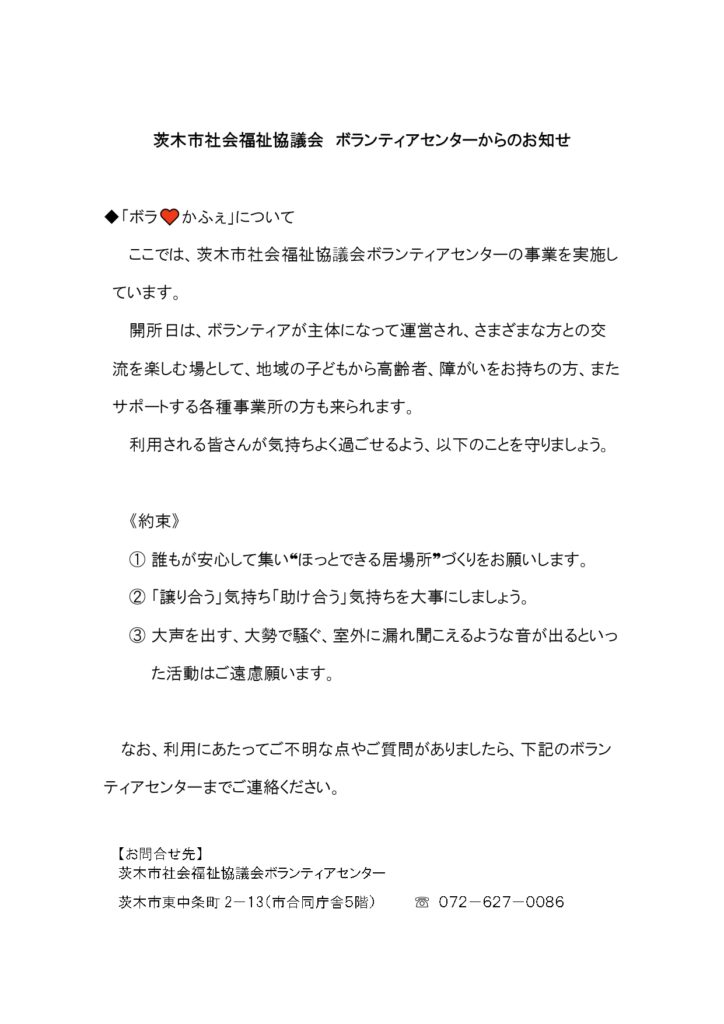 茨木市社会福祉協議会ボランティアセンター『ボラ♥かふぇ』からのお知らせ