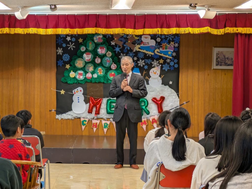 子どもたちが毎年楽しみにしているクリスマス行事♪ たくさんのプレゼントを目の前にし、子どもたちは嬉しそうな表情で目をキラキラとさせ、お返しには子どもたちから歌やメッセージのプレゼントをいただきました。