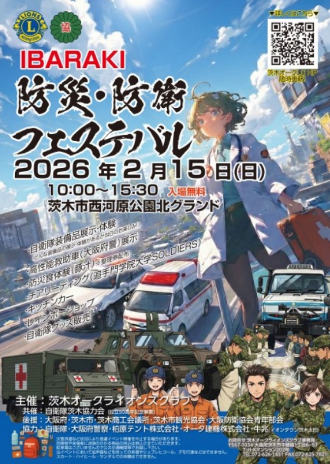 茨木オークライオンズクラブ主催『IBARAKI防災・防衛フェステバル』(2/15(日))が開催されます。