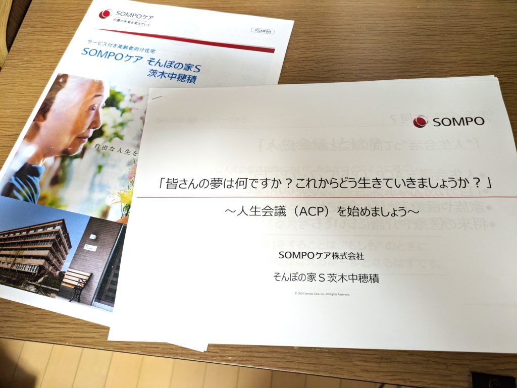 食後にはそんぽの家s茨木中穂積のホーム長藤原さまより「皆さんの夢は何ですか?これからどう生きていきましょうか?」