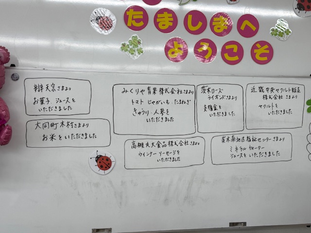 茨木市こども政策課を通じてヤクルトや弁天宗からはお供えのお菓子を提供して頂いたそうです。