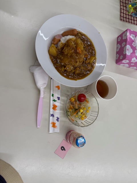 カレーにウィンナーとヤクルトも付いて豪華に