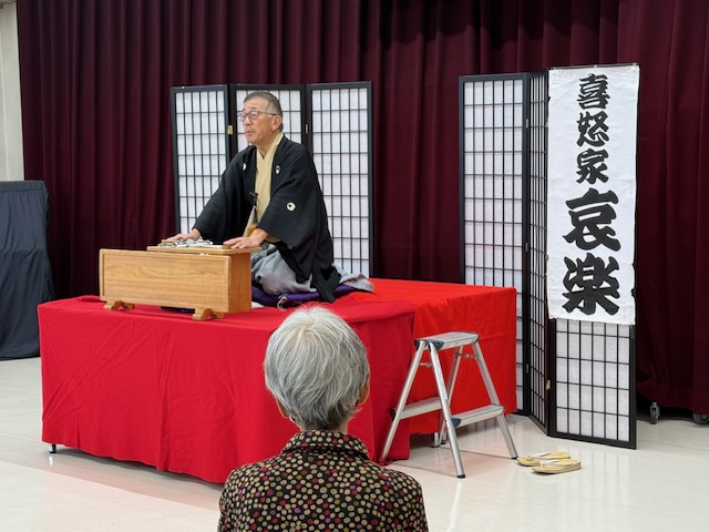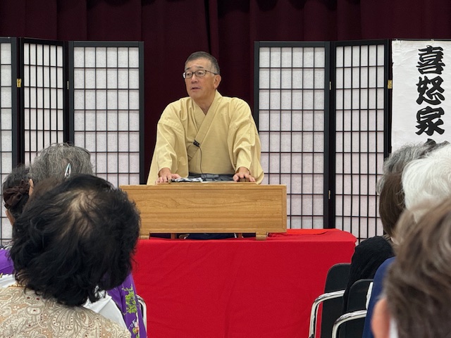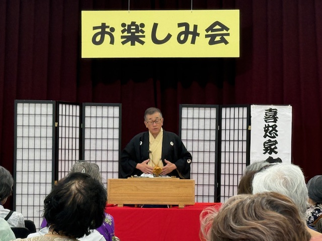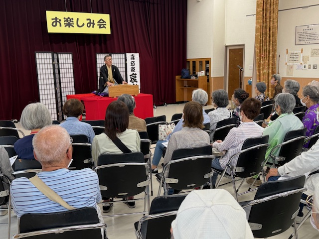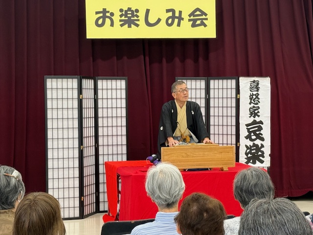本日の演目は(子ほめ)でした。相手が喜ぶことを、アレコレ伝授したものの、使い方によって理解の仕方や伝わり方に違いがあると言う落語で、シニアの皆さんも大笑いしていました。