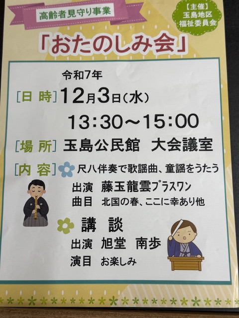 12月3日(水)13時半〜玉島公民館にて高齢者見守り事業『お楽しみ会』を開催しました。