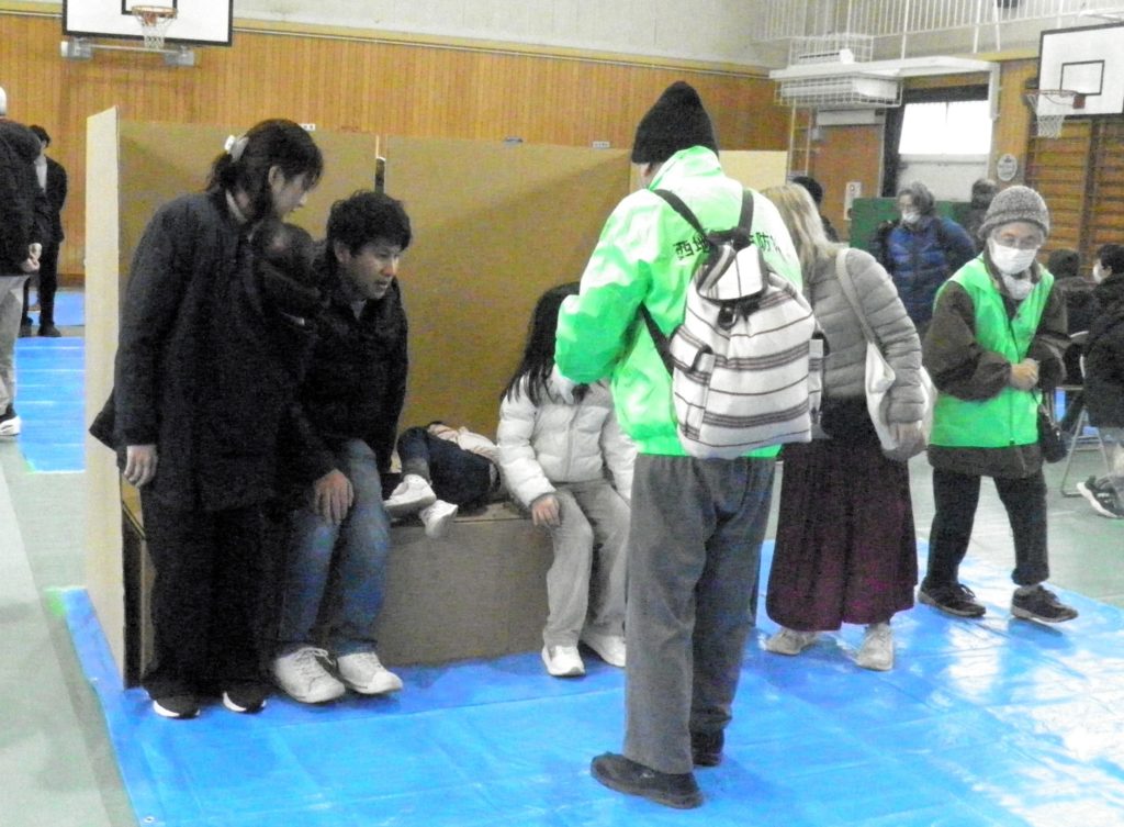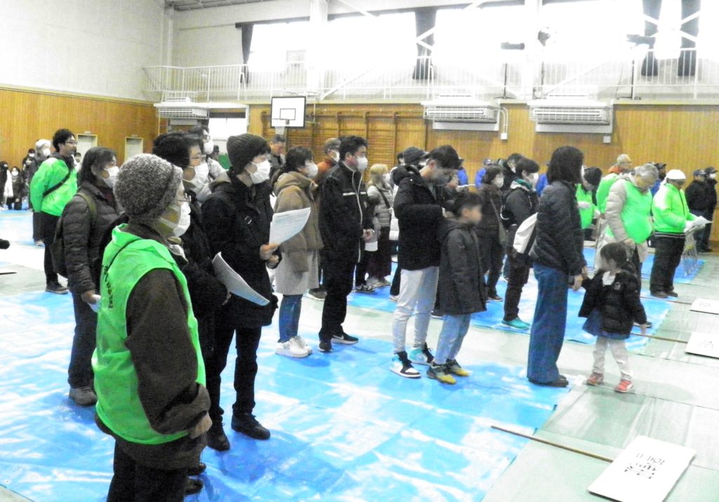 あいにくの雨の中の自主防災訓練の開催となりました。西小学校玄関前から、体育館に参加者が集まり、実際に地震等の災害が発生した時に備えての訓練でしたが、それが雨のため体育館を利用しての訓練となりました。地域の自治会長さん、学校の先生やPTA、地域協議会の皆さんとご一緒に、福祉委員の多くが、各自主防災会の会長と班長、役員を担い、また炊き出しの準備等をしていました。