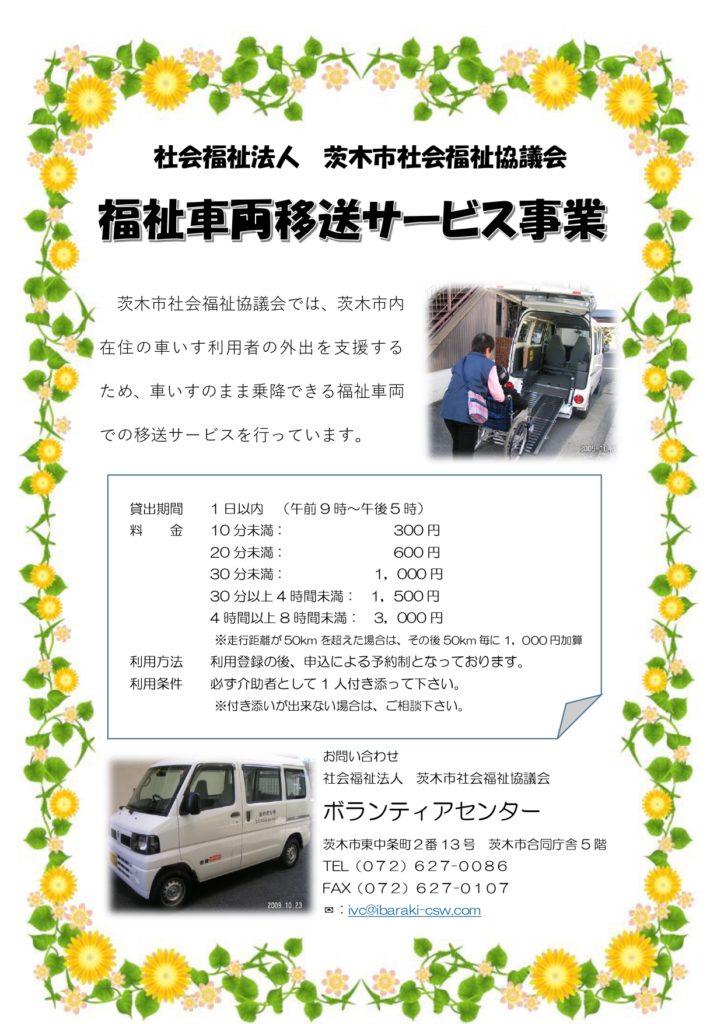 福祉車輌移送サービスは共同募金配分金により運営しています。