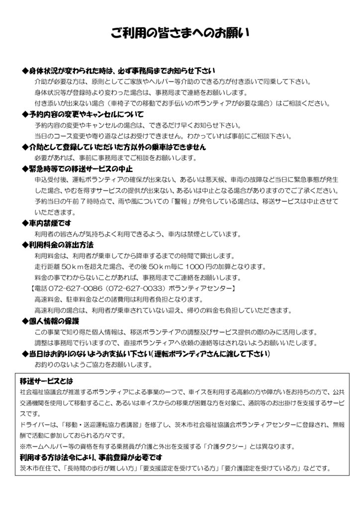 ※ご利用には際には、必ず付添い者1名が同乗してください。